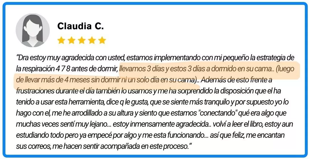"Dra. Rita, apenas puedo creerlo. Mateo no solo va a la escuela sin resistencia, ¡ahora me cuenta emocionado sobre su día! Anoche incluso durmió en su propia cama toda la noche por primera vez en meses. Siento que por fin he recuperado a mi hijo."